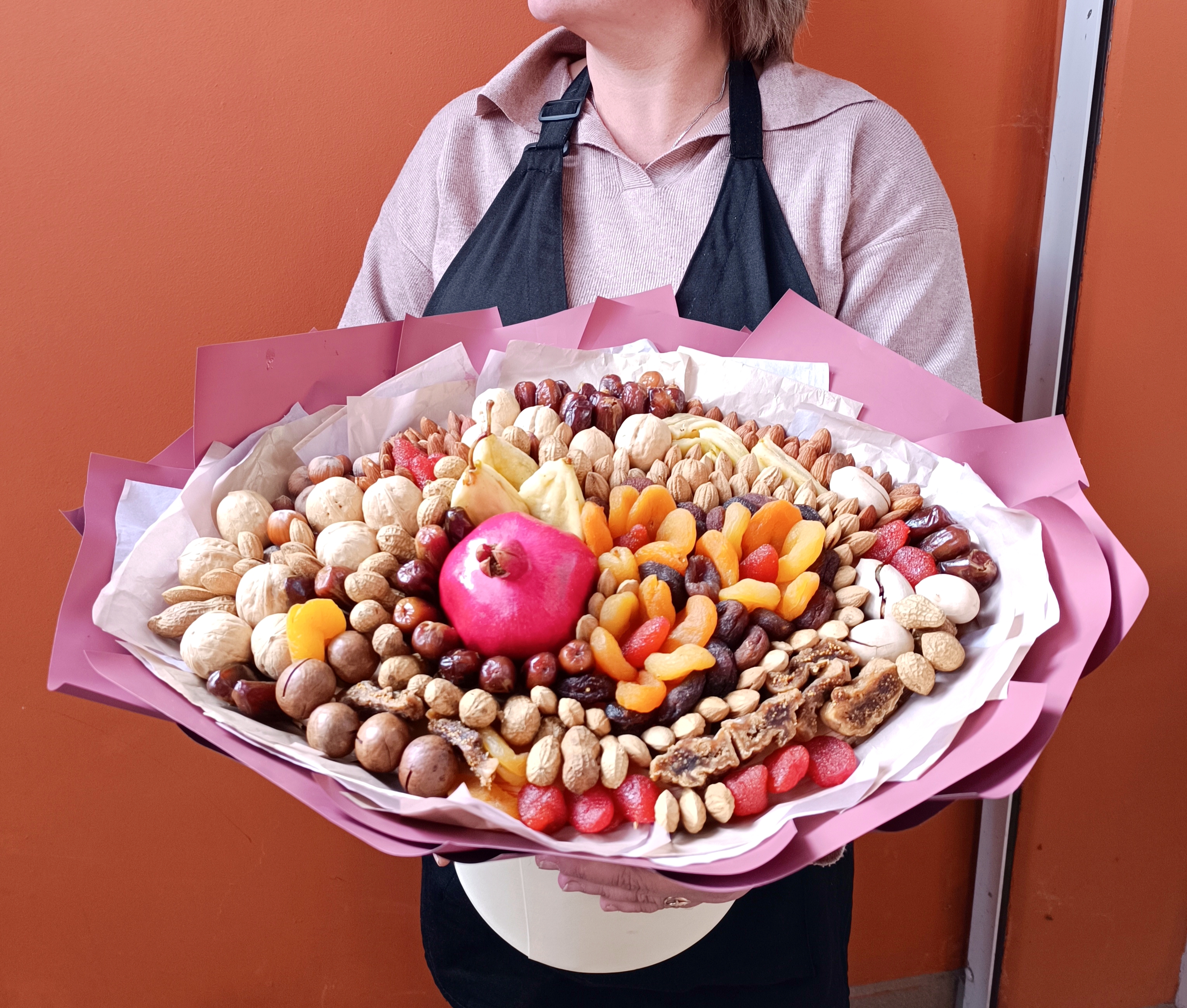Букет с гранатом, орехами и сухофруктами